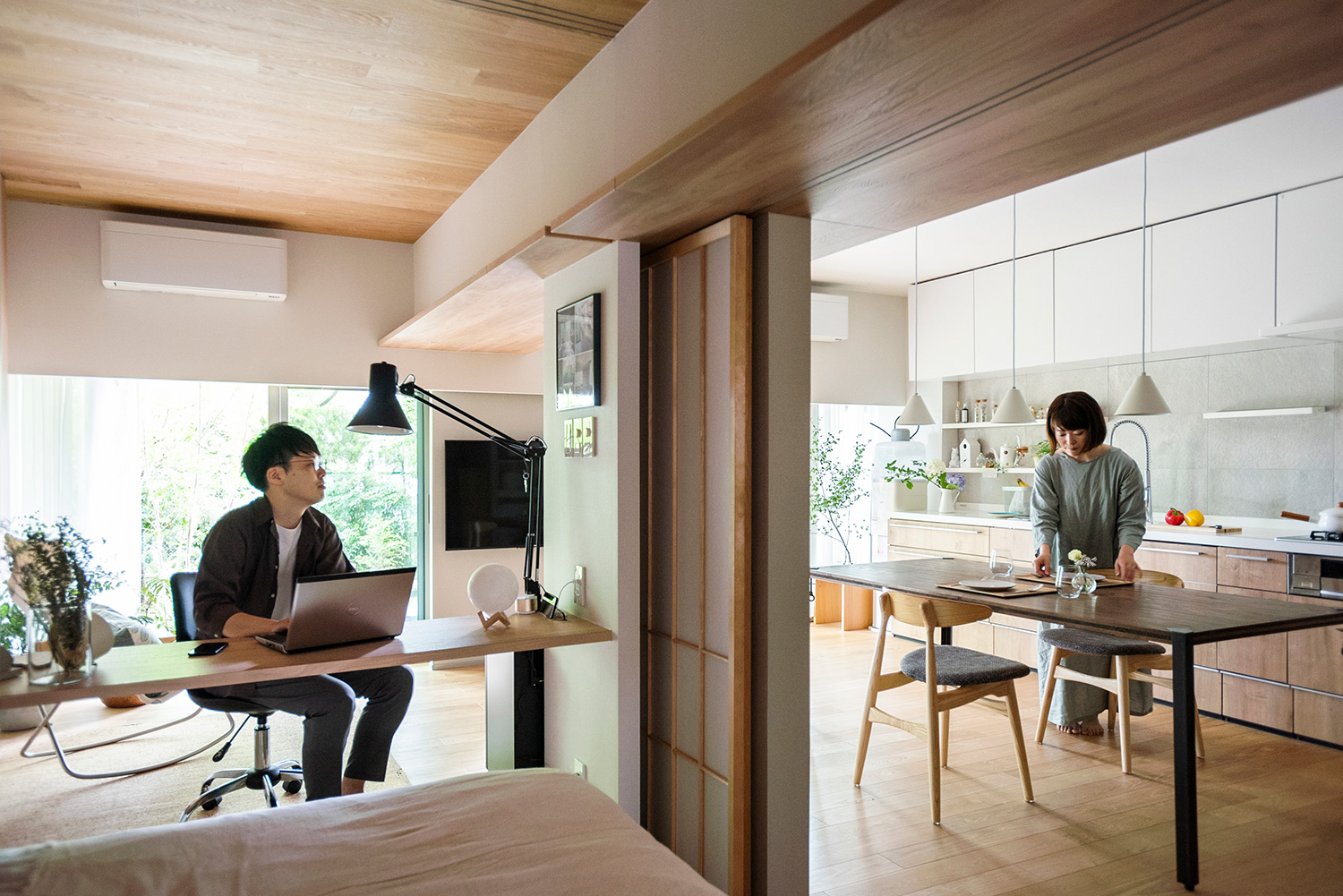 「書斎、ワークスペースは、家族の気配を感じながらも仕切られた空間があれば集中できます。