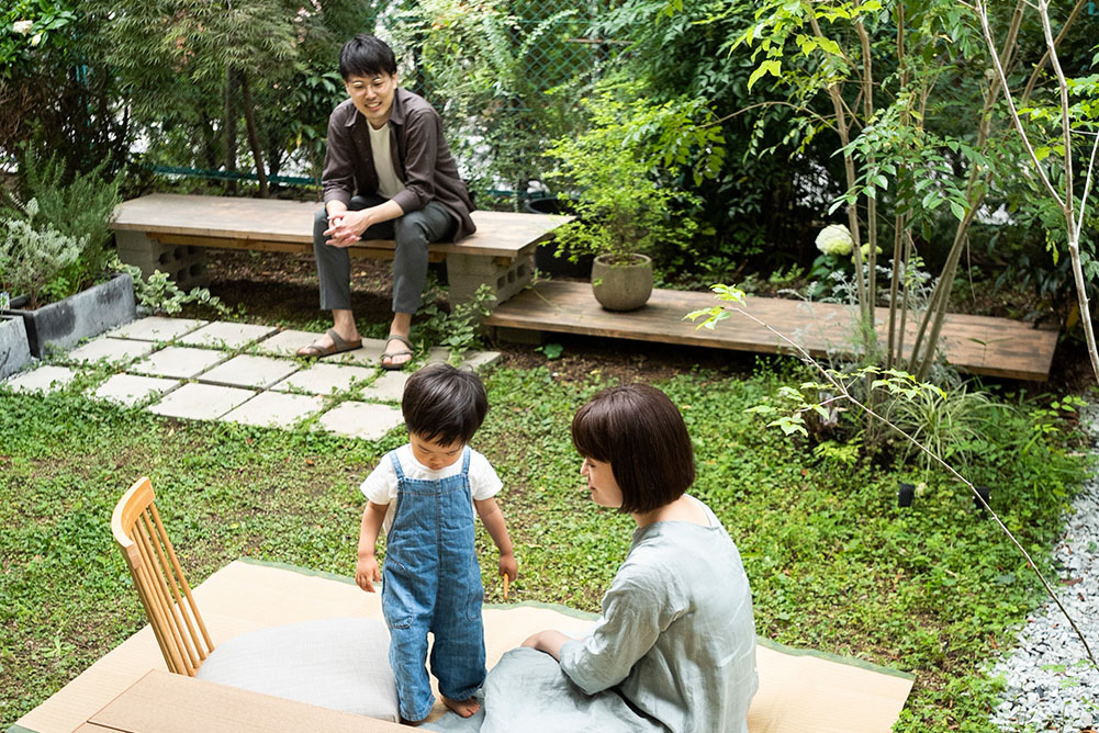 集合住宅ながら広い庭を有するこの家は、茂木さんが「子育て期間の10年間」を過ごすことを念頭に設計されている。